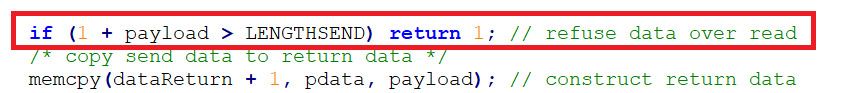 修复这个漏洞很简单,在memcpy之前加上对有效数据长度(payload)的检测即可。