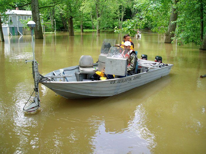 Flow data is collected by transecting the river, the stream, or the lake in a boat equipped with an ADCP (Figure 1).