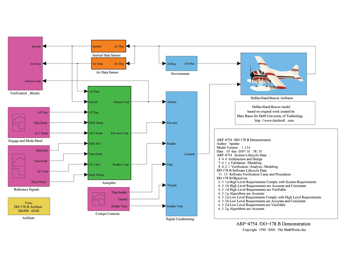 Software systems deployed in safety-critical applications in aerospace and other industries must satisfy rigorous development and verification standards. One of the most widely used of these standards is DO-178B, “Software Considerations in Airborne Systems and Equipment Certification.” DO-178B specifies 66 software development process objectives, distributed across various stages in the development lifecycle. It was published in 1992, when most software was hand-coded. As a result, it does not cover advanced software development technologies, and must be mapped onto the processes and tools in Model-Based Design.
