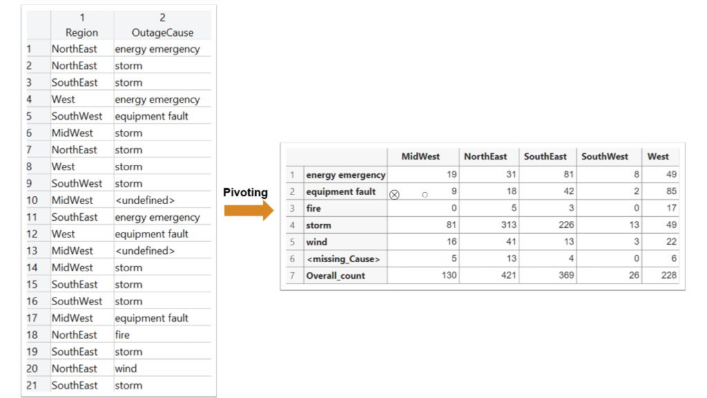 • Stacking and unstacking: Reshaping multidimensional arrays to consolidate or redistribute data within the table, making it easier for analysis