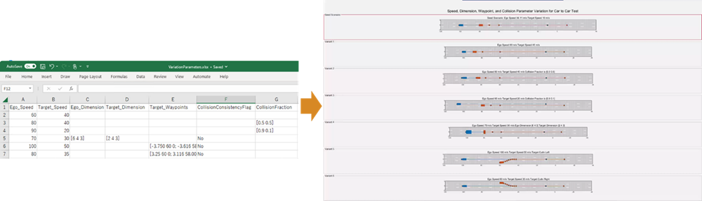 図7. Euro NCAPシナリオ生成機能とRoadRunner Scenarioによるシナリオの確認