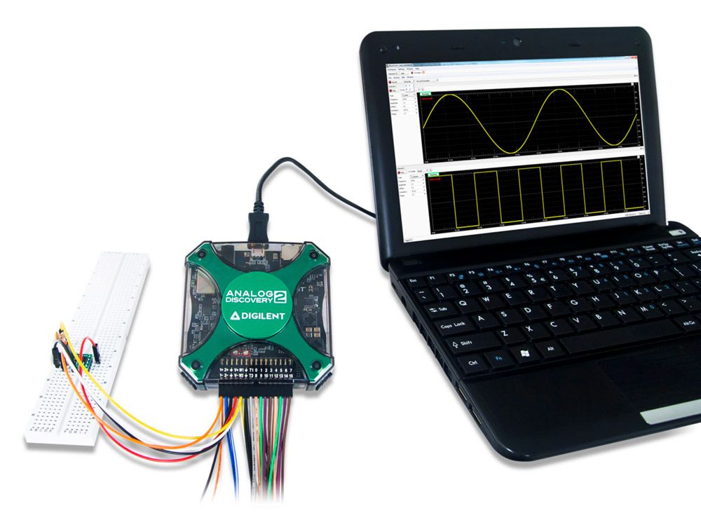 MATLAB supports the Digilent Analog Discovery™ design kit, a low-cost, portable USB DAQ device. The kit enables project-based learning for analog circuit design. For professors and course instructors, the kit comes with downloadable teaching materials, reference designs, and lab projects.