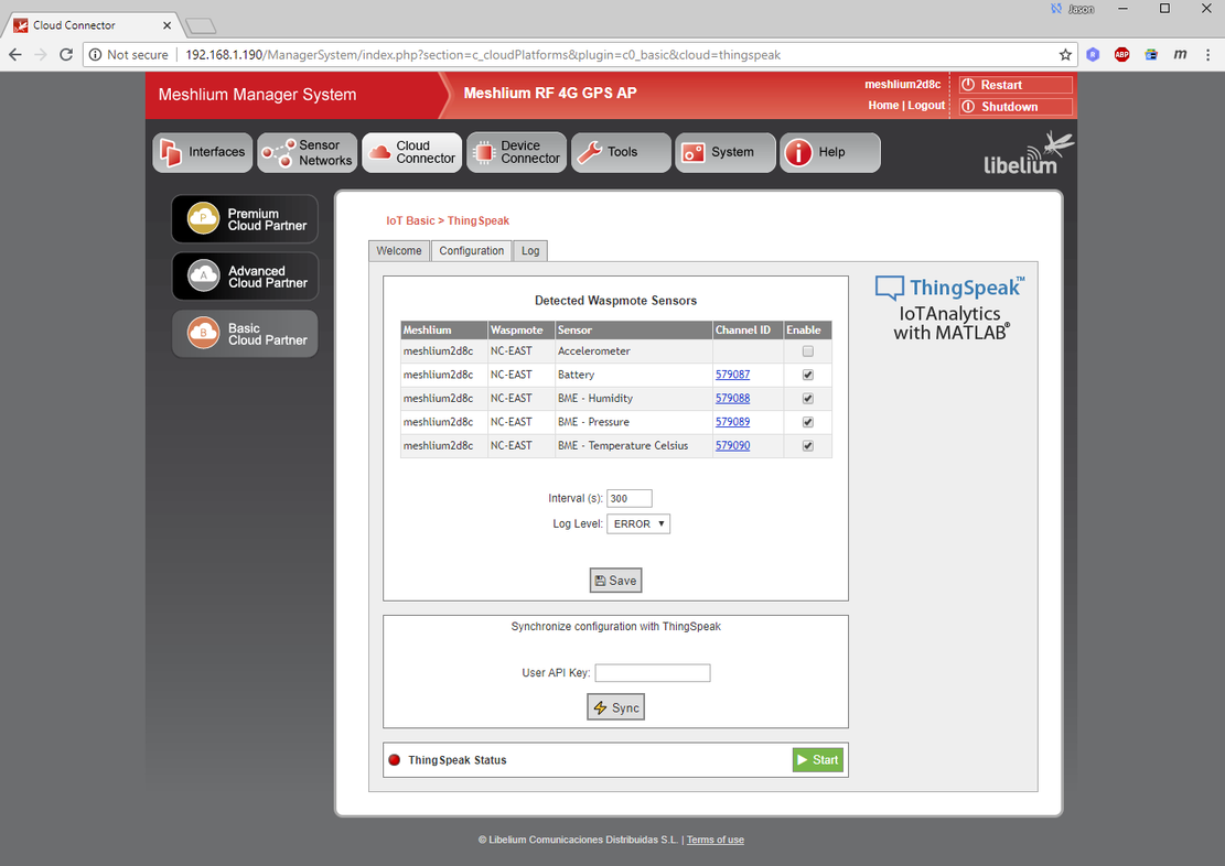 You can easily connect your Libelium waspmotes to the ThingSpeak IoT analytics platform by using the ThingSpeak cloud connector, which is built into the Libelium Meshlium IoT gateway. With the ThingSpeak cloud connector, you can pass data from your Libelium sensors to ThingSpeak without writing any custom code.