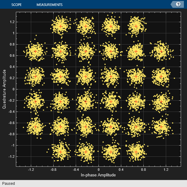crossQAM = qammod(0:31,32,UnitAveragePower=true);