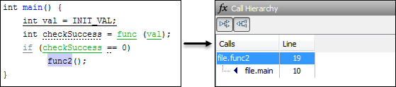 func2below), click the function name to update the Call Hierarchy pane.