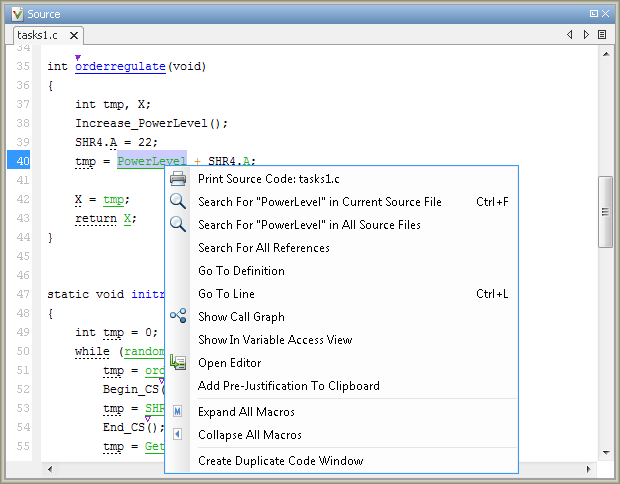 Search For All References — List all references in the Search pane. The software supports this feature for global and local variables, functions, types, and classes.