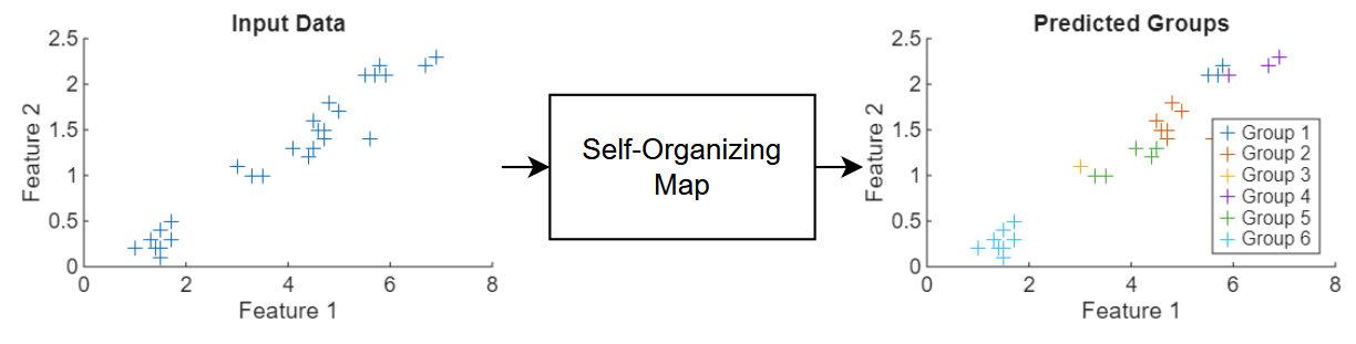 This example shows how to train a self-organizing map (SOM) neural network to cluster unlabeled data.