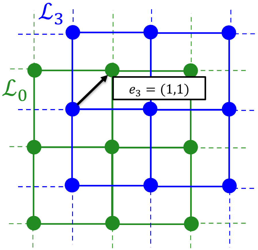Shift right and up — A lattice that, compared to the original lattice, shifts half a lattice constant to the right and half a lattice constant to the top, in the direction (1,1).