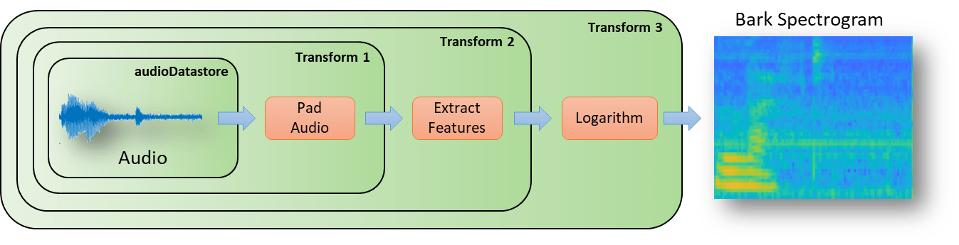 The input layer of this Deep Learning network expects the extracted audio features to be formatted as an image, where the audio samples are transformed as described in the image above.