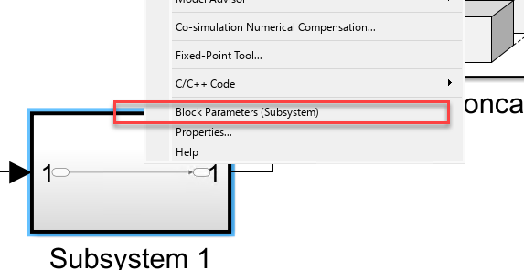 To set the block parameter, right-click on this block and click on Block Parameters(Subsystem) then enable the Treat as atomic unit.