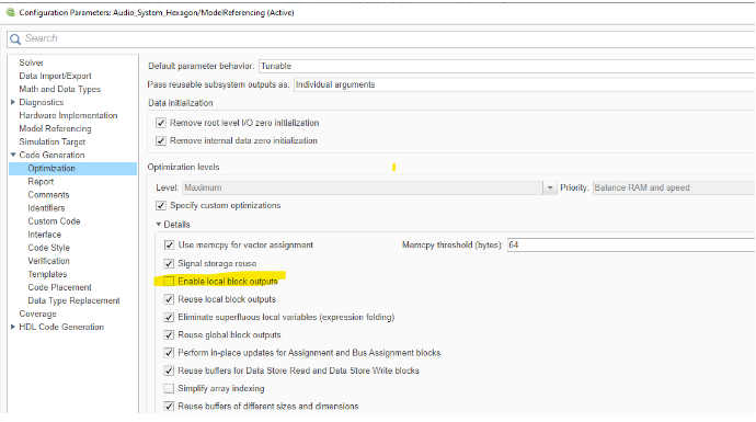 Disable the Enable local block output under CodeGeneration > Optimization > Specify custom optimizations.