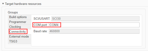 The verify and set the COM port navigate to Hardware Implementation > Target hardware resources > Connectivity.