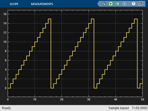 Open the hdlcoder_sf_counter_complete model to see the completed model. Simulate the model.