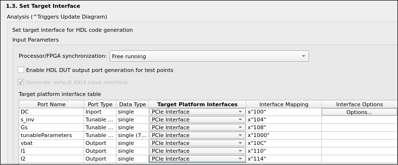 4. In Set Target Interface task, map the input and output single data type ports to PCIe Interface and click the Run This Task button.