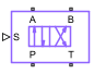 This image shows the valve when the Positive spool position open connections parameter is P-B, A-T: