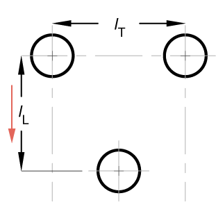 lL is the Longitudinal tube pitch (along flow direction), the distance between the tube centers along the flow direction. Flow direction refers to the thermal liquid flow.