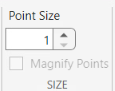 Adjust the display size of the points by specifying the Point Size. For the first-person navigation using perspective projection, you can enlarge the points for better visualization. When you select Magnify Points, you can attenuate the size of the points based on the camera position. If the camera is positioned closer to the points, the points appear bigger than when the camera is far away. The Magnify Points option applies only for the perspective camera projection and the first person controls.