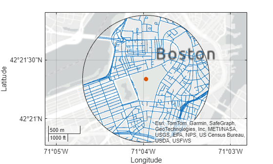 places = readgeotable("boston_placenames.shp"); flagstaff = geocode("FLAGSTAFF HILL",places); clipperPolygon = aoicircle(flagstaff,1000)