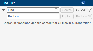 Editor - All open filesto only search in files open in the Editor, and in the File type field, enter*.m, *.mlxto limit the search to MATLAB® program files.