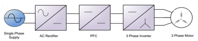 DC-AC Inverter: This module converts the DC input voltage into 3 phase AC voltage which is connected to the motor terminals.