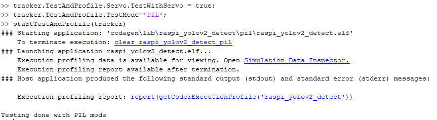 Run this command at the MATLAB Command prompt to verify the object detection in PIL mode.