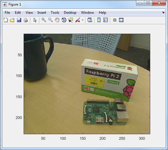 Raspberry Pi hardware.wcam = webcam(mypi, cameraName, resolution)