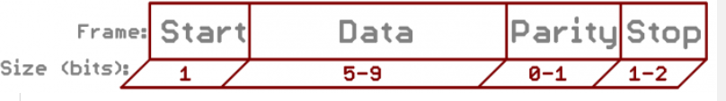 Data in serial communication is transmitted in a ‘packet’ or a ‘frame’. A data frame consists of a ’start’ bit, ‘data’, ‘parity bit’, and a ‘stop bit’. A ‘start bit’ indicates an idle data line changing its value from 1 to 0. A ‘stop bit’ indicates the transition back to the idle state by holding the line at 1.