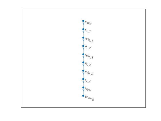 imitateMPCLayers = [ featureInputLayer(numObs) fullyConnectedLayer(45) reluLayer fullyConnectedLayer(45) reluLayer fullyConnectedLayer(45) reluLayer fullyConnectedLayer(numActions) tanhLayer scalingLayer(Scale=1.04) ];