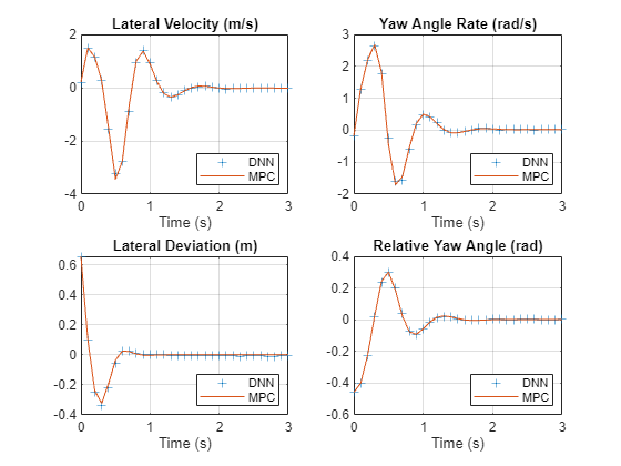 This example shows how to train, validate, and test a deep neural network that imitates the behavior of a model predictive controller for an automotive lane keeping assist system. In the example, you also compare the behavior of the deep neural network with that of the original controller.