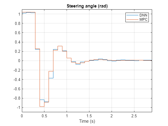 To compare the performance of the MPC controller and the trained deep neural network, run closed-loop simulations using the vehicle plant model.