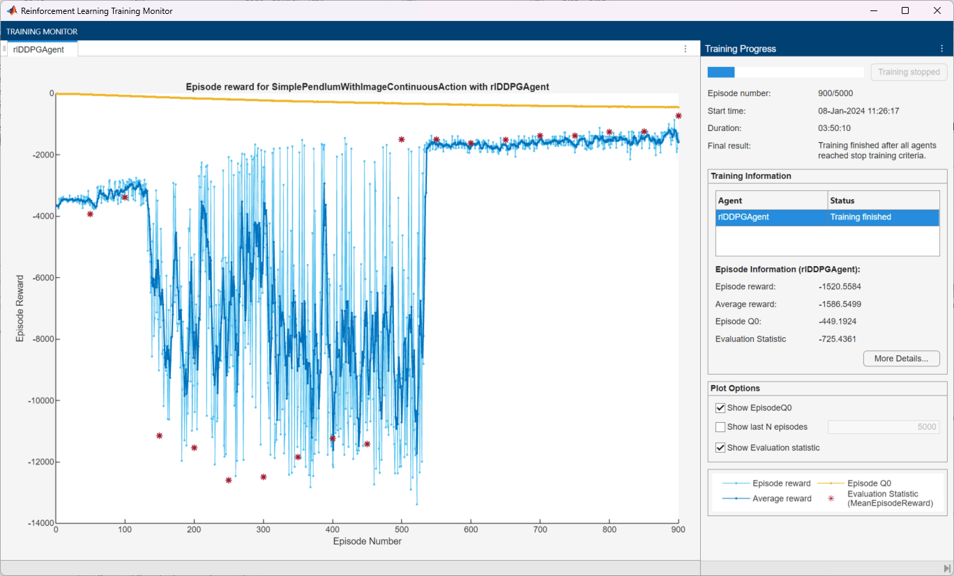 trainingStats = train(agent,env,trainingOptions, Evaluator=evl);