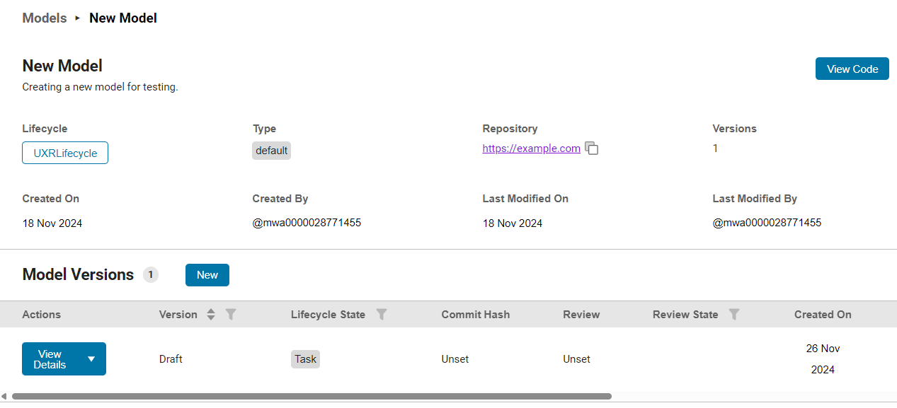 Each Modelscape model must be associated with a lifecycle. A lifecycle is a set of possible states the model can inhabit, as well as the transitions between them. Each model version must be in one of the states of the lifecycle.