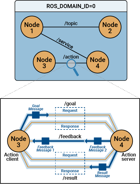 Client — An action client is the node which requests a goal to be completed. It can track the execution status of the goal and cancel goals if necessary.
