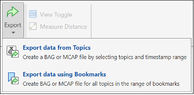 When working with a single large bag file containing numerous topics, exporting data using topics or bookmarks provides two distinct methods to streamline your analysis by focusing on specific data.