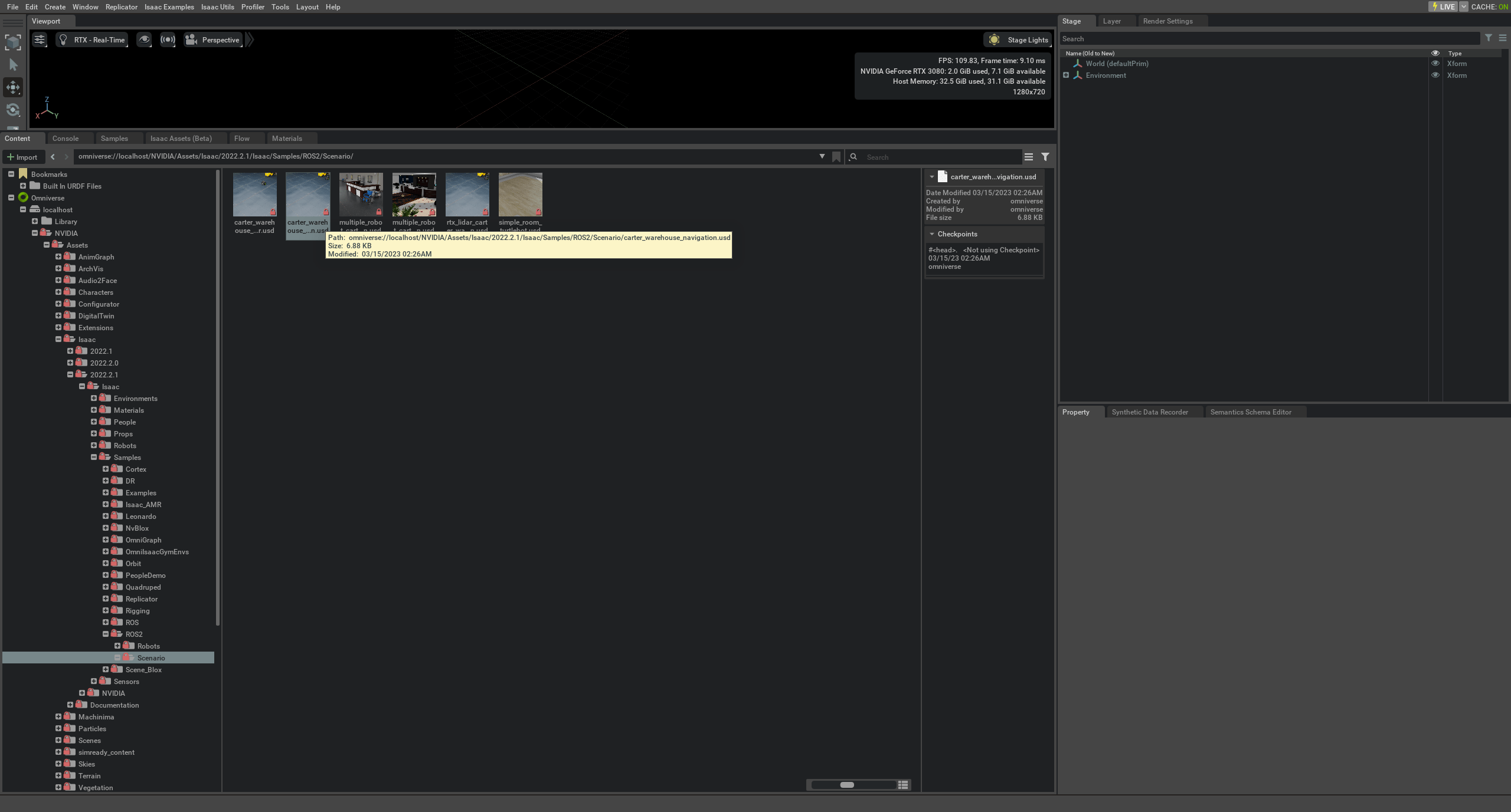 1. Navigate to this location under Content tab in Isaac Sim : omniverse://localhost/NVIDIA/Assets/Isaac/2022.2.1/Isaac/Samples/ROS2/Scenario.