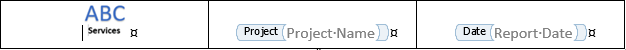 • The table cells contain the company logo, a hole for the project name, and a hole for the report date.