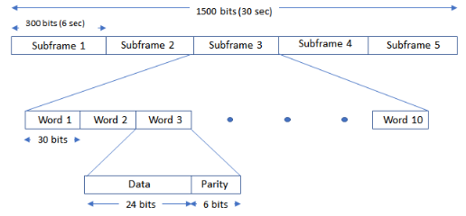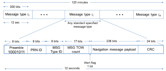 Each satellite continuously broadcasts a navigation message that contains this information: