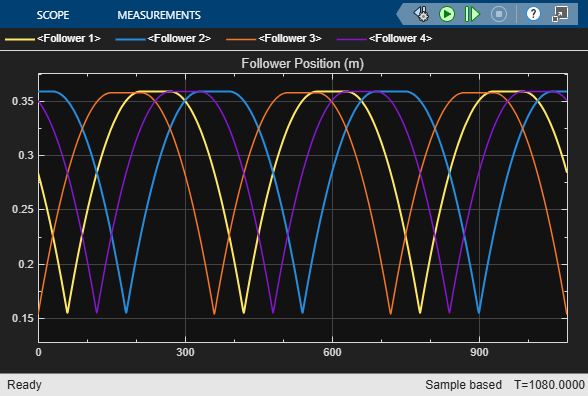 Simulate the model to view the knife-edge follower positions.