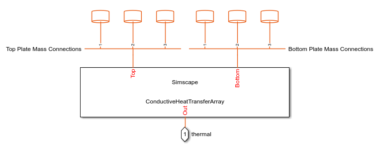The model uses Array Connection blocks, both in Scalar Elements and Sized Elements mode, to group signals into Arrays of Nodes. This facilitates interaction with the Simscape language and helps to clean up the block diagram, reducing clutter and enhancing readability.