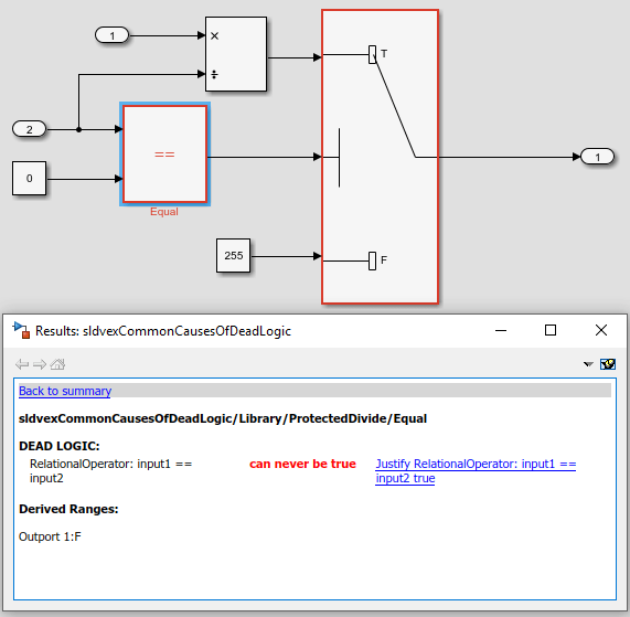 Model Advisor ChecksCheck for dead logic (Simulink Check)
