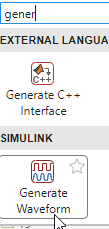 generate waveform,vector,timeseries,timetable,input,signal,source, orwaveform. From the selected completions, select Generate Waveform.