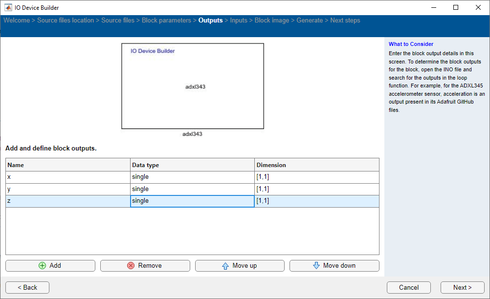 Create ADXL343 Sensor Block to Read Acceleration Using IO Device Builder App