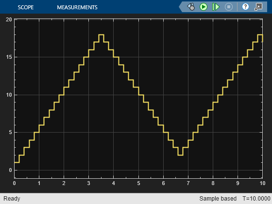 The MATLAB function adds the value (1 or -1) determined by the active state to the persistent variable n at each time step.
