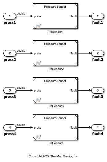 To allow Model blocks that reference the pressure sensor model to override the default values and provide instance-specific values to these block parameters, observe that sensor_params has the Argument check box selected to configure the parameter as a model argument.