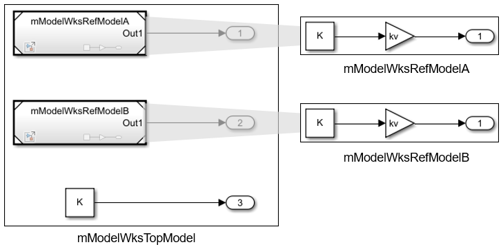 A model reference is a reference to another model using a Model block. You can reuse a model multiple times by referring to it with multiple Model blocks. These references create a model hierarchy. You can then configure a block parameter (such as the Gain parameter of a Gain block) to use either the same value or a different value for each instance of the model. To set different values for the same parameter across multiple model instances, create and use a model argument. For more information, see Configure Instance-Specific Values for Block Parameters in a Referenced Model.