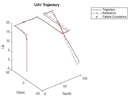 exampleHelperPlotTrajectory(simout,faultParam,HoverMission);