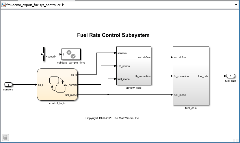 Open the fmudemo_export_fuelsys_controller model.