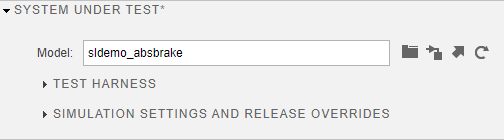 4. Load the sldemo_absbrake model into the test case. In the System Under Test section, click the Use current model button