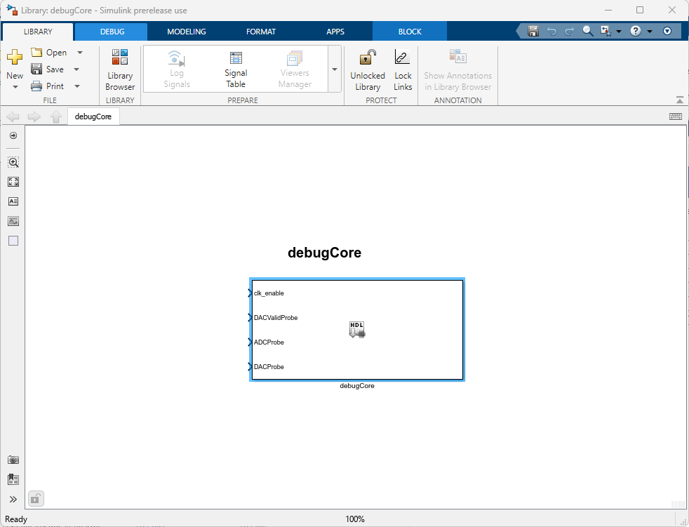 13. Copy the generated debugCore Simulink block into the soc_rfsoc_datacapture_fpga FPGA model.