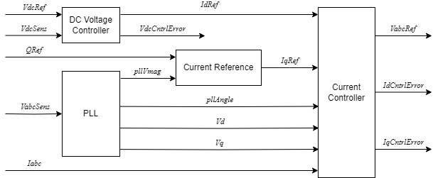 The reactive power reference calculates the per-unit q-axis reference current IqRef.